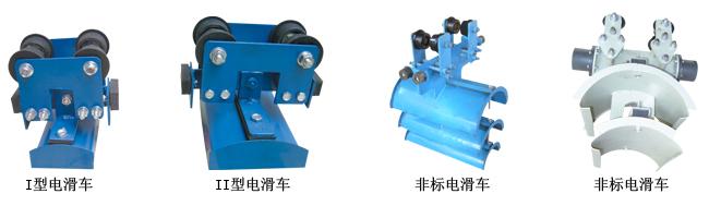 工字鋼電纜滑車系列為起重機小車供電的一種導(dǎo)電形式,它由行走輪、支架、托板組成,將軟電纜固定在托板上,由牽引架與電纜滑車同步,從而實現(xiàn)電纜供電目的。