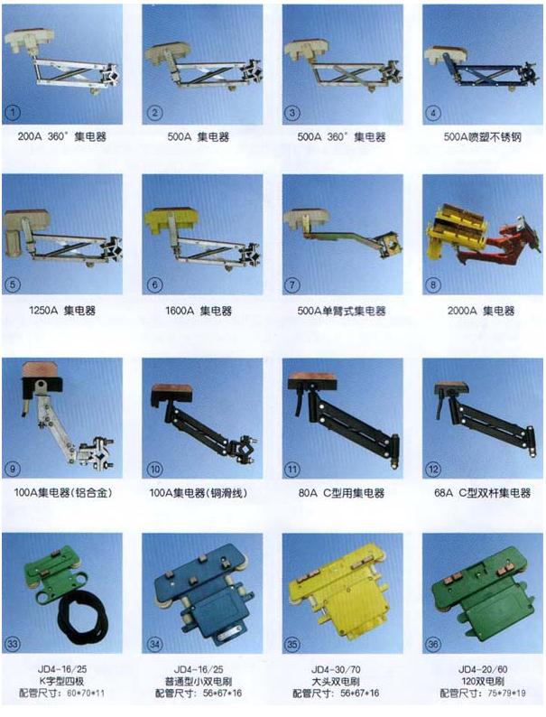 選用滑觸線集電器的時(shí)候,首選集電器最好是考慮和滑觸線相配套,不要亂用集電器,否則會(huì)影響行車的正常運(yùn)行,嚴(yán)重了會(huì)燒壞滑觸線。集電器上面的靴片是由含銅碳基壓制而成的,購買后要檢查與滑線的吻合型。由于集電器本身屬于易耗品,長(zhǎng)期使用會(huì)磨損靴片,所以要定期檢查,集電器上面靴片的磨損程度,并定期更換。