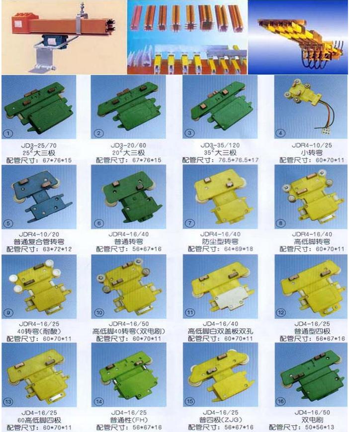 選用滑觸線集電器的時(shí)候,首選集電器最好是考慮和滑觸線相配套,不要亂用集電器,否則會(huì)影響行車(chē)的正常運(yùn)行,嚴(yán)重了會(huì)燒壞滑觸線。集電器上面的靴片是由含銅碳基壓而成的,購(gòu)買(mǎi)后要檢查與滑線的吻合型。由于集電器本身屬于易耗品,長(zhǎng)期使用會(huì)磨損靴片,所以要定期檢查,集電器上面靴片的磨損程度,并定期更換。