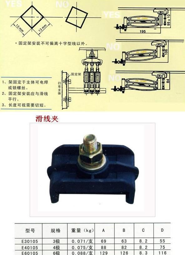 柔性一體式滑觸線是以無(wú)氧銅(導(dǎo)電率達(dá)99.99%)輸送電源、銅導(dǎo)體之厚度厚(一般標(biāo)準(zhǔn)厚為2.8m/m×10W)、壓降小、導(dǎo)電率倍佳;可根據(jù)用戶(hù)的車(chē)間長(zhǎng)度或用戶(hù)的需求來(lái)配一條以之相同長(zhǎng)度的安全電軌,使整個(gè)車(chē)間安全配電中間沒(méi)有任何接口,真正解決了國(guó)產(chǎn)滑觸線因接口多經(jīng)?ㄗ〖娝⒍斐啥搪坊虿荒苓\(yùn)行的問(wèn)題。并且適用于曲線、弧形及高低行走的設(shè)計(jì),并且安裝簡(jiǎn)便。從而使整套天車(chē)工程美觀、整潔又安全。產(chǎn)品有3P、 4P、 6P等規(guī)格,在自動(dòng)化生產(chǎn)的行列中,絕對(duì)是供電系統(tǒng)最佳的選擇。